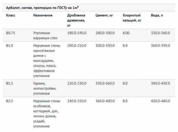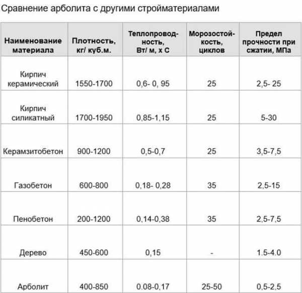 В зависимости от плотности, и прочности определяют марку арболита. Ниже приводиться таблица, которая поможет вам разобраться в этих значениях.