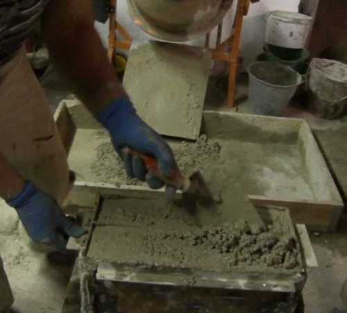 Во время заполнения подготовленной формы раствором уплотнять ее можно вручную, однако лучше всего для этих целей использовать вибропресс.