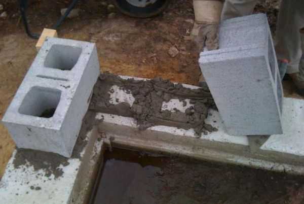 | Начинают всегда с углов. Выкладывают в каждом из них по два стыкующихся блока первого ряда, перекрывают «в перевязку» одним блоком второго ряда. Обязателен тщательный контроль горизонтальности стартовой кладки – от нее во многом будет зависеть ровность всех рядов. | |