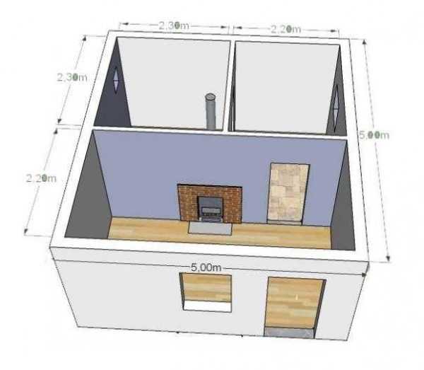 Один из примеров планировки баниИтак, если вам нужен проект бани из шлакоблока, ищите любой одноэтажный или с надстроенной мансардой. Других ограничений нет. Даже если вам захочется стены иметь нелинейные, их можно будет сделать из монолитного шлакобетона.
