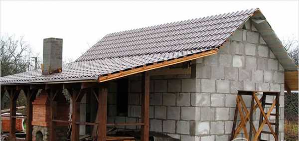 Крыша для бани из шлакоблоков практически не отличается от других построек. Много полезной информации можно получить, посетив специальный раздел нашего портала, посвящённый именно крыше и кровле. Впрочем, об одной особенности все же можно сказать.