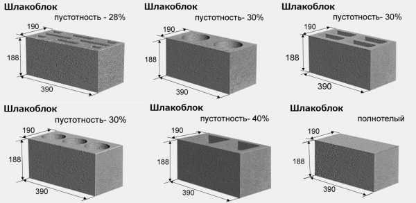 Разные пустоты по форме и процентному соотношениюШлакоблок для строительства бани — особенности строительства, плюсы и минусы
