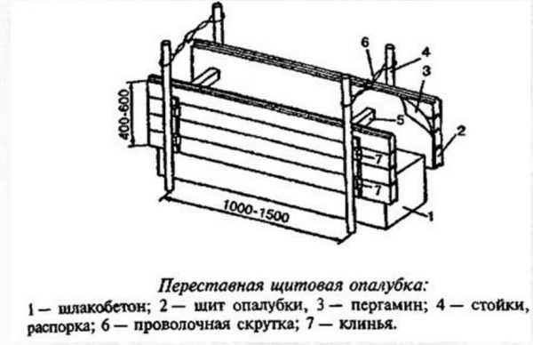 Но если время ограничено, изготовление блоков сильно затягивает процесс: вам необходимо ждать не менее недели после формовки перед тем, как уложить блок в стену. То есть, теряется много времени. Выход — делать стены из монолитного шлакобетона. Из широких досок или влагостойкой фанеры изготавливается передвижная опалубка. В нее заливается бетон, уплотняется. В опалубке шлакобетон остается некоторое время — до схватывания цемента, после чего ее можно передвигать вверх и продолжать заливку стен.