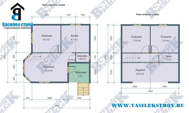 план помещения 6х8 м, постройки из пеноблоков, бруса и каркасные мансардные дома