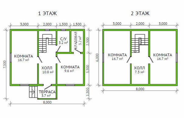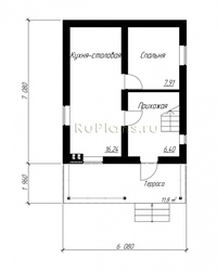 Площадь этого дома больше, что позволяет разместить в нем все необходимые помещения.Его планировка мало чем отличается от планировки дома 6х6.