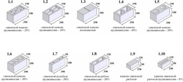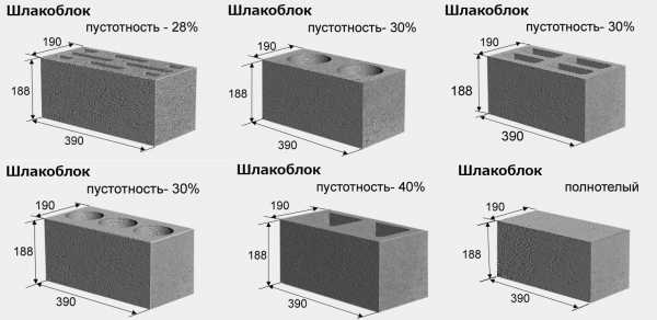Существующие виды и размеры шлакоблоков