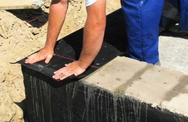 - внешняя стенка покрывает рулонной гидроизоляцией. Это будет дополнительной защитой блоков от воздействия внешней среды.