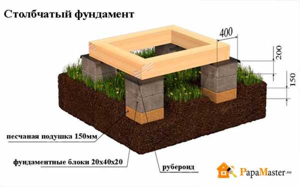 - После чего на дне шурфов или вырытой ямы создается подушка из гравия и песка мелкой фракции. Затем по гравию расстилается рубероид, он поможет создать гидроизоляционную основу для нижней части основания постройки. На слой рубероида можно также залить армированную подошву или установить специальный блок на основе железобетона.