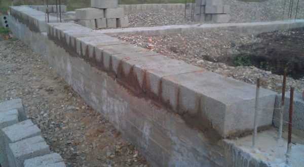 Пирмер ленточного фундамента из шлакобетонных блоков