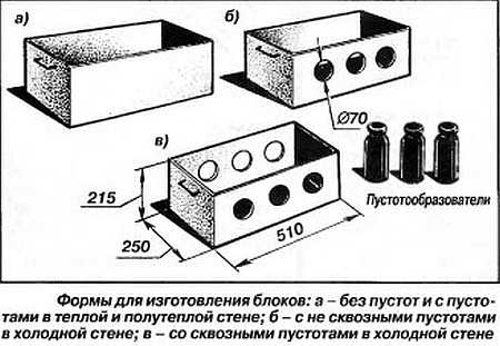 ΠΠ»Ρ ΠΈΡ ΠΈΠ·Π³ΠΎΡΠΎΠ²Π»Π΅Π½ΠΈΡ ΠΈΠΌΠ΅Π΅ΡΡΡ ΡΠΏΠ΅ΡΠΈΠ°Π»ΡΠ½ΠΎΠ΅ ΠΎΠ±ΠΎΡΡΠ΄ΠΎΠ²Π°Π½ΠΈΠ΅: ΡΡΠ°Π½ΠΊΠΈ Π΄Π»Ρ ΠΏΡΠΎΠΈΠ·Π²ΠΎΠ΄ΡΡΠ²Π° ΡΡΡΠΎΠΈΡΠ΅Π»ΡΠ½ΡΡ Π±Π»ΠΎΠΊΠΎΠ². ΠΠ½ΠΈ ΡΠ°ΡΡΡΠΈΡΠ°Π½Ρ Π½Π° ΠΎΠ΄Π½Ρ, Π΄Π²Π΅, ΡΡΠΈ ΠΈ Π±ΠΎΠ»Π΅Π΅ Π±Π»ΠΎΠΊΡΠΎΡΠΌ. Π’Π°ΠΊΠΎΠΉ ΡΡΠ°Π½ΠΎΠΊ ΠΏΡΠ΅Π΄ΡΡΠ°Π²Π»ΡΠ΅Ρ ΡΠΎΠ±ΠΎΠΉ Π²ΠΈΠ±ΡΠΎΡΡΠΎΠ» ΠΈ, ΡΠΎΠ±ΡΡΠ²Π΅Π½Π½ΠΎ, ΡΠ°ΠΌΠΈ Π±Π»ΠΎΠΊΡΠΎΡΠΌΡ β Π΅ΠΌΠΊΠΎΡΡΠΈ Π΄Π»Ρ ΡΠΎΡΠΌΠΎΠ²Π°Π½ΠΈΡ Π±Π»ΠΎΠΊΠΎΠ². Π‘ΡΠ°Π½Π΄Π°ΡΡΠ½ΡΠΉ ΡΠ°Π·ΠΌΠ΅Ρ ΠΈΠ·Π΄Π΅Π»ΠΈΡ β 190x190x390 ΡΠΌ. ΠΠ»ΠΎΠΊΡΠΎΡΠΌΠ° ΠΈΠΌΠ΅Π΅Ρ ΠΌΠ½ΠΎΠΆΠ΅ΡΡΠ²ΠΎ ΡΡΠ΅ΠΌΠ½ΡΡ ΠΏΠ΅ΡΠ΅Π³ΠΎΡΠΎΠ΄ΠΎΠΊ, ΠΊΠΎΡΠΎΡΡΠ΅ ΠΏΠΎΠ·Π²ΠΎΠ»ΡΡΡ ΠΏΡΠΎΠΈΠ·Π²ΠΎΠ΄ΠΈΡΡ ΡΠ°Π·Π½ΡΠ΅ ΡΠ°Π·ΠΌΠ΅ΡΡ Π±Π΅ΡΠΎΠ½Π½ΡΡ ΠΈΠ·Π΄Π΅Π»ΠΈΠΉ Π² ΠΏΡΠ΅Π΄Π΅Π»Π°Ρ ΡΡΡΠ°Π½ΠΎΠ²Π»Π΅Π½Π½ΡΡ . Π’Π°ΠΊΠΆΠ΅ ΠΎΠ½Π° ΠΎΠ±ΠΎΡΡΠ΄ΡΠ΅ΡΡΡ ΠΏΡΠΈΡΠΏΠΎΡΠΎΠ±Π»Π΅Π½ΠΈΠ΅ΠΌ Π΄Π»Ρ ΠΈΠ·Π³ΠΎΡΠΎΠ²Π»Π΅Π½ΠΈΡ ΠΏΡΡΡΠΎΡΠ½ΠΎΠ³ΠΎ Π±Π»ΠΎΠΊΠ°. ΠΡΠ° Π΄Π΅ΡΠ°Π»Ρ ΠΏΡΠ΅Π΄ΡΡΠ°Π²Π»ΡΠ΅Ρ ΡΠΎΠ±ΠΎΠΉ Π΄Π²Π° (ΠΈΠ»ΠΈ ΡΡΠΈ) ΡΠΎΠ΅Π΄ΠΈΠ½Π΅Π½Π½ΡΡ ΠΎΡΡΠ΅Π·ΠΊΠΎΠΌ ΡΡΠ°Π»ΡΠ½ΠΎΠ³ΠΎ ΠΏΡΡΡΠ° ΡΠΈΠ»ΠΈΠ½Π΄ΡΠ°, ΠΊΠΎΡΠΎΡΡΠ΅ Π²ΡΡΠ°Π²Π»ΡΡΡΡΡ Π² Π±Π»ΠΎΠΊΡΠΎΡΠΌΡ ΠΏΠ΅ΡΠ΅Π΄ Π·Π°Π»ΠΈΠ²ΠΊΠΎΠΉ Π² Π½Π΅Π΅ Π±Π΅ΡΠΎΠ½Π°. ΠΡΠΈ ΡΠΈΠ»ΠΈΠ½Π΄ΡΡ ΠΏΠΎΡΠ»Π΅ Π·Π°ΡΠ²Π΅ΡΠ΄Π΅Π²Π°Π½ΠΈΡ ΠΊΠ°ΠΌΠ½Ρ ΠΈΠ·ΡΠΌΠ°ΡΡΡΡ, ΠΈ, ΡΠ°ΠΊΠΈΠΌ ΠΎΠ±ΡΠ°Π·ΠΎΠΌ ΠΏΠΎΠ»ΡΡΠ°ΡΡΡΡ ΠΏΡΡΡΠΎΡΡ Π² Π³ΠΎΡΠΎΠ²ΠΎΠΌ Π±Π»ΠΎΠΊΠ΅. ΠΡΠΎΡ ΡΠΏΠΎΡΠΎΠ± ΠΏΠΎΠ·Π²ΠΎΠ»ΡΠ΅Ρ Π·Π½Π°ΡΠΈΡΠ΅Π»ΡΠ½ΠΎ ΡΡΠΊΠΎΠ½ΠΎΠΌΠΈΡΡ Π½Π° ΡΠ΅ΠΌΠ΅Π½ΡΠ½ΠΎΠΌ ΡΠ°ΡΡΠ²ΠΎΡΠ΅.