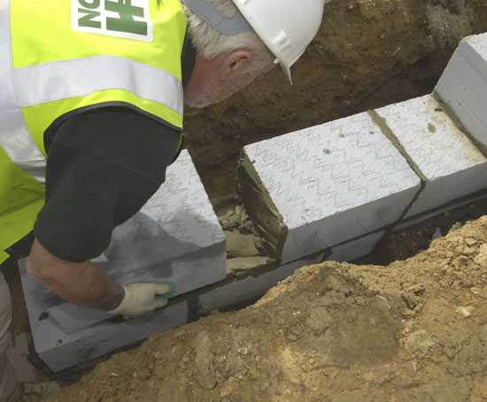 В качестве базовой платформы может использоваться ленточный фундамент, обладающий также хорошими теплоизоляционными характеристиками. В связи с небольшой массой материала глубину заложения можно сократить до 50-60 сантиметров.