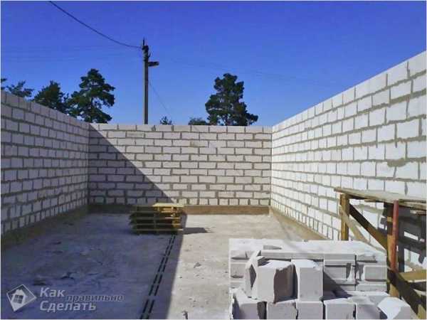 Чтобы сформировать боковые плоскости строения без посторонней помощи, необходимо ознакомиться с особенностями кладки этого материала. Перед началом работ нужно проверить горизонтальность цокольной части, избежав тем самым лишних сложностей.