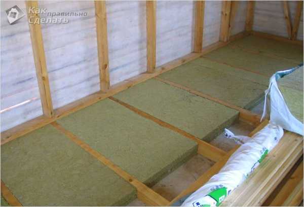 - Вату или поролон уложите сверху лаг и накройте досками;