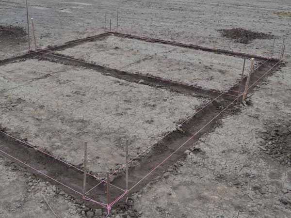 - Выполняется предварительная разметка, после чего за линией основания устанавливается обноска, позволяющая определить внутреннюю часть.