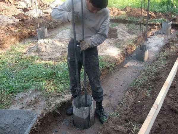 - Производится заливка раствора внутрь конструкции, при этом желательно осуществить работы за один раз.