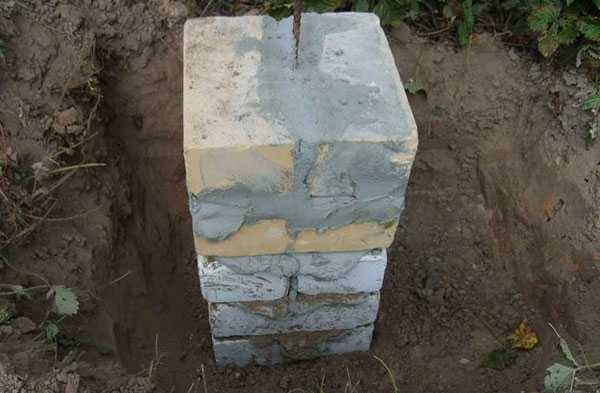 Идеальный фундамент: смесь битого кирпича или камней с раствором цемента. Залейте ров на несколько месяцев, а лучше на пол года. Если вдруг раствор будет проседать, добавьте свежего и выровняйте его с уровнем земли.