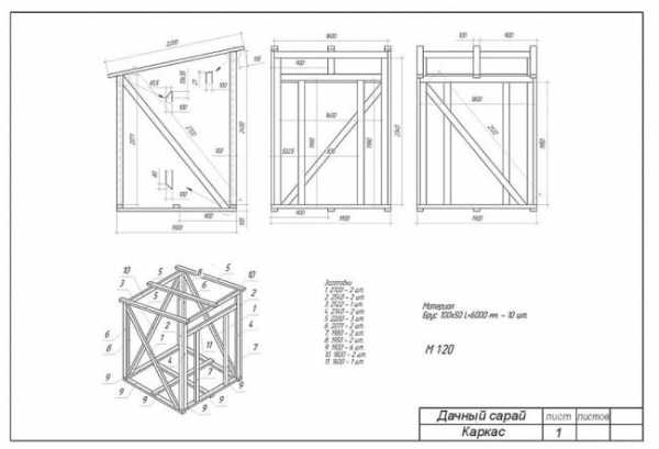 Ну и более долговечный деревянный сарай для дачи можно построить следующим образом: