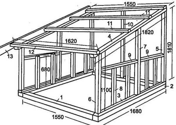 - Материал изготовления – каркас из брусков, обшитый необрезной доской