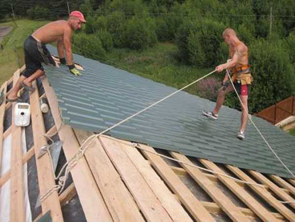 - Переходим к перекрытию крыши. Для этого используем любой из популярных кровельных материалов (шифер, профнастил, металлочерепицу). Конструкция крыши может быть как односкатная, так и двухскатная, но лучше использовать последний вариант, т.к. он более привлекателен.
