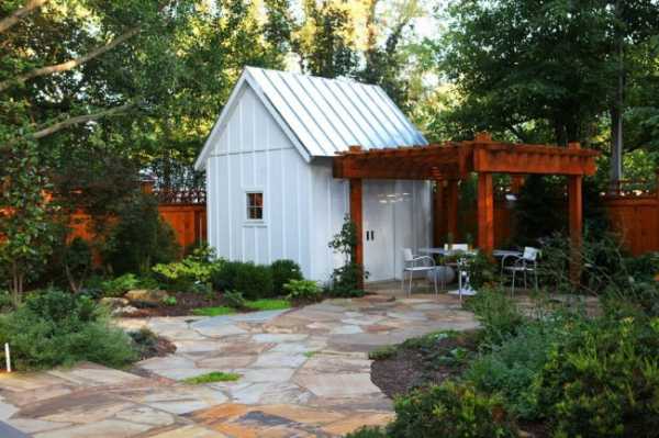 В любом случае эту хозяйственную зону всегда можно сделать привлекательнее. Например, проработав оформление дорожки к нему, или же разбить вблизи ароматные цветники или пышные кустарники. Хорошее украшение любого фасада здания, даже самого невзрачного – это вьющиеся растения, они придадут нотку изысканности всему вашему участку.
