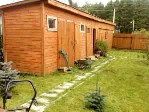 На загородном участке должны присутствовать подсобные строения, необходимые для хранения инвентаря, дров и других целей. К примеру, можно построить баню своими руками из пеноблоков или обычный сарай, который будет обладать боковыми плоскостями с низкой теплопроводностью.