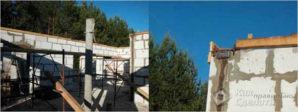 Возведение стен производится с обязательным устройством армированных поясов, которые устраивают в последнем ряду каждого этажа.