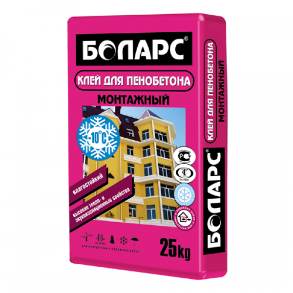 Клей предназначен для выполнения монтажных работ при возведении стен из блоков ячеистого бетона (пенобетона, газосиликата и т.д.), а также для выравнивания поверхностей пеноблоков и шпатлевания (до толщины 5 мм).