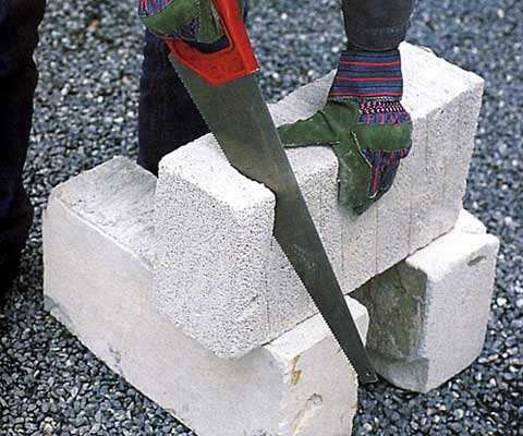 Газобетонные блоки легко поддаются обработке, их можно пилить обыкновенной ножовкой. Это существенно упрощает процесс строительства сложных участков дом: крыши, арочных оконных или дверных проемов