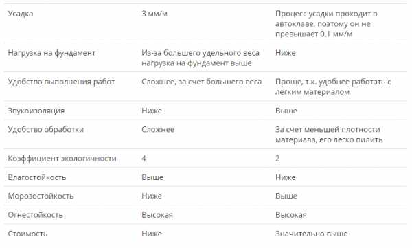 Сравнение характеристик 2 этих кладочных материалов демонстрирует зависимость выбора ячеистых бетонов от назначения строения и выделенного бюджета. Определяющим фактором, что лучше выбрать в данном случае, будут конструкция и условия эксплуатации постройки.
