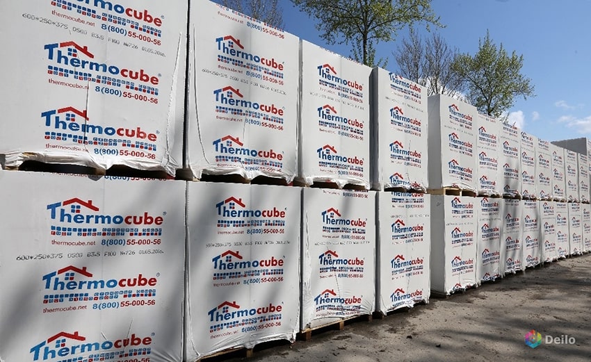 При строительстве из газобетона «ЭКО» быстрота и экономичность достигаются за счет относительно больших габаритов (600*(50-500)*250) газобетонного блока и его малого веса. При этом существенно (по некоторым оценкам в 4 раза) возрастает скорость сТеплоизоляционные свойства блоков ячеистого бетона