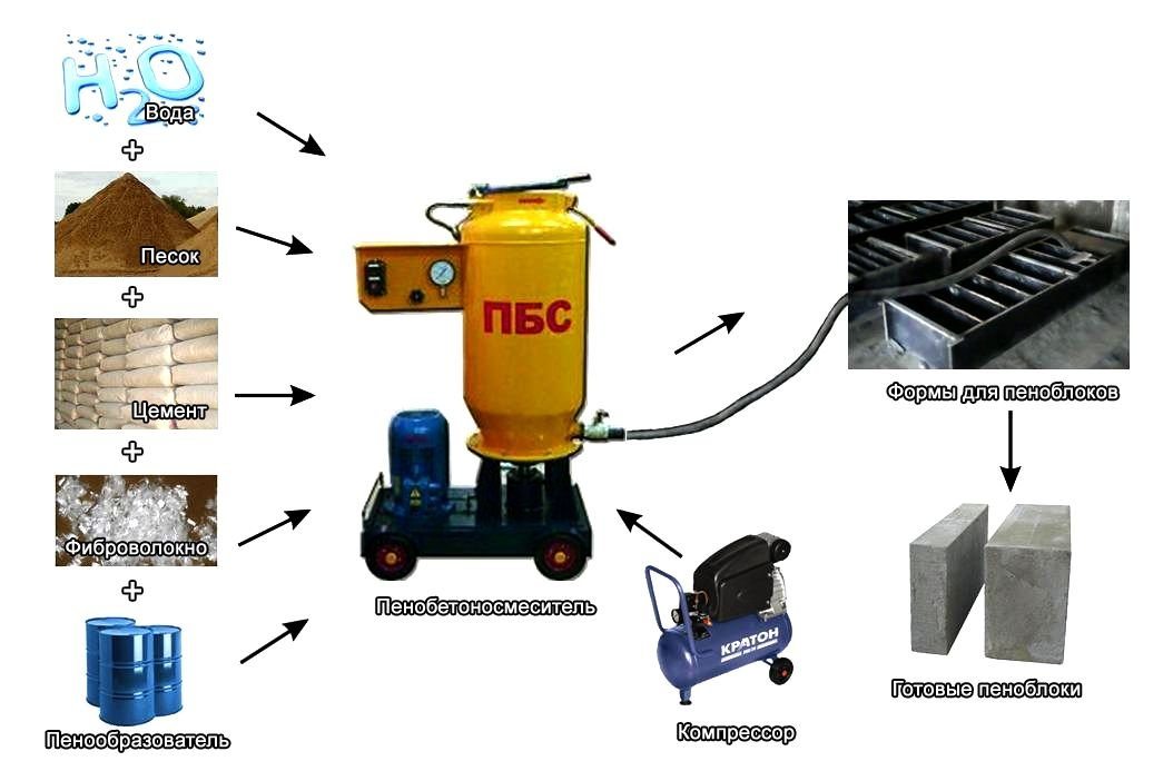 Основными компонентами, входящими в состав любой пенобетонной смести, являются:
