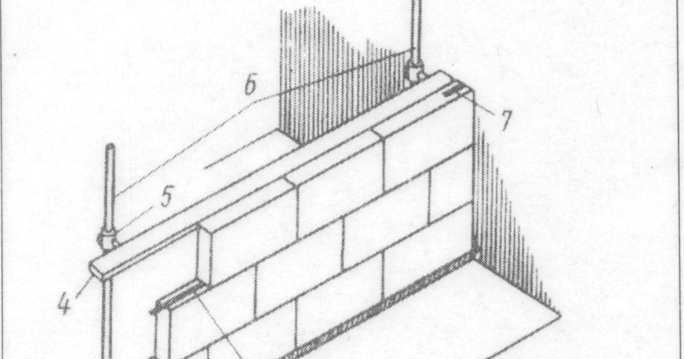 1. Связка с капитальными стенами и простенками. Перед тем как начнется укладка, в примыкающие стены на стыке с будущей перегородкой забивают штыри или крупные гвозди, играющие роль связующих элементов.