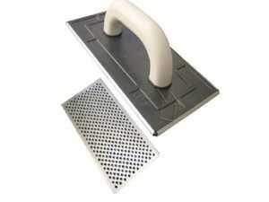 Терка для обработки поверхности блокаХотя и газоблок производится на профессиональном оборудовании, все же не помешает, как следует подготовиться и купить специальную терку. Особенно если планируется строить перегородку из газобетона своими руками. Этим инструментом очень удобно удалять разного рода наплывы и прочие выступающие элементы с поверхности.