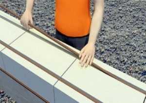 - Если толщина стенки не больше 10 см, каждый ряд армируют или привязывают к несущей стене или перегородке. Это делают, используя обрезки арматуры и стальной проволоки диаметром от 6 мм.
