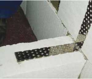Чтобы обеспечить связь с примыкающими стенами на стадии кладки в швы закладывают гибкие связи — это тонкие металлические перфорированные пластины или Т-образные анкера. Их устанавливают в каждом 3-м ряду.