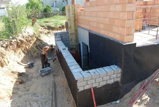 Как уже было отмечено выше, стены погреба будут сделаны из пенобетонных или керамзитобетонных блоков. Этот материал очень прочный и имеет точную геометрию, поэтому создание какого-либо дополнительного гидроизоляционного слоя не потребуется. Даже в том случае, если грунтовые воды будут затрагивать стены погреба, относительно их разрушения можно не волноваться, потому что его не произойдет.