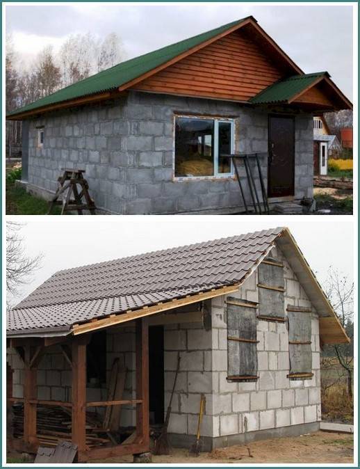 Возведение крыши. Крышу нужно обязательно построить до осени, так как конструкции из шлакоблоков очень боятся сырости.