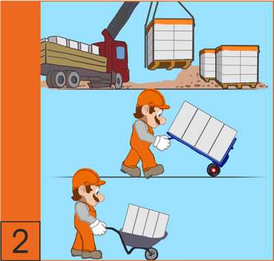 1. На время строительства и хранения рекомендуется размещать поддоны на ровной проветриваемой площадке. Штабелировать не более 2 поддонов по высоте.