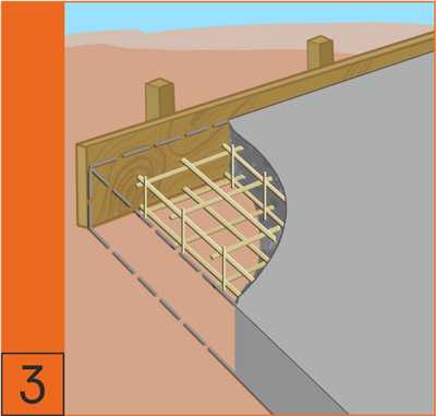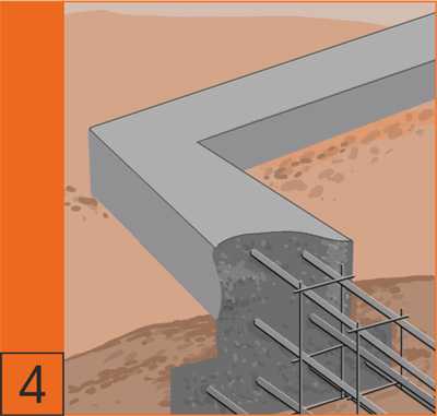 4. Ленточный монолитный армированный фундамент является наиболее распространенным. Глубина заложения, количество стержней арматуры и ее сечение определяются проектом. Рекомендуем применять стальную арматуру.