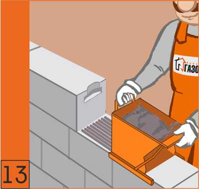 25. На торцевую сторону U-образных блоков наносится клей для газобетона.