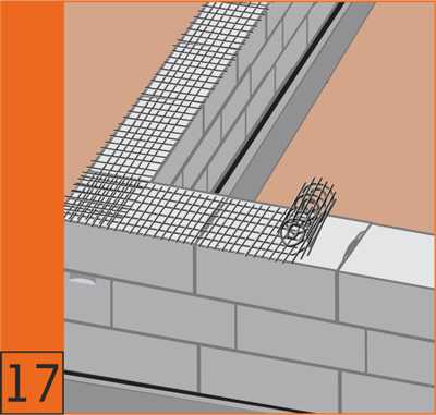 17. Вместо стержневой арматуры для армирования кладки допускается примечание композитной армирующей сетки. На углах и пересечениях стен, а также при стыковке сетка укладывается с перехлестом.