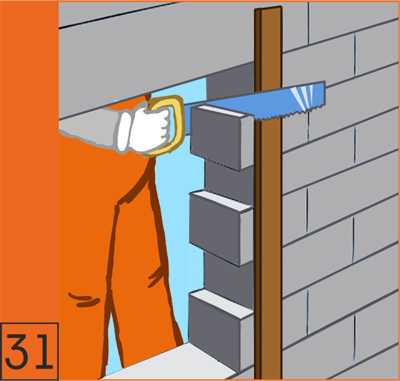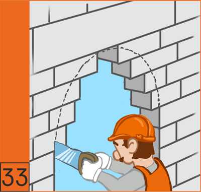 33. Оконные и дверные проемы сложной форма легко вырезаются ножовкой по газобетону (см. инструменты)