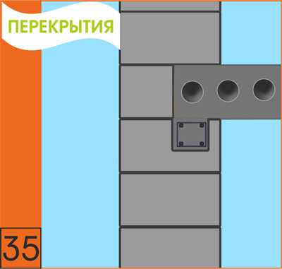 35. При устройства перекрытия из железобетонных пустотных плит, плиты укладываются на сейсмический (армированный) монолитный пояс выполненный из U-образных блоков, с последующей обвязкой и замоноличиванием в единый диск жесткости.