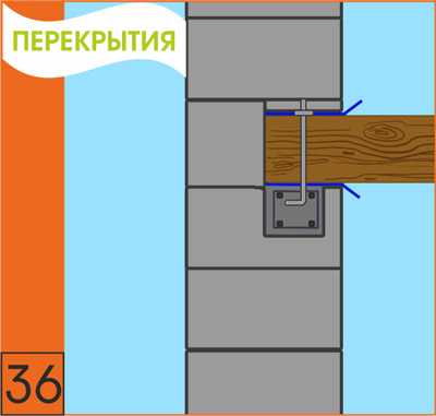 36. При устройстве деревянных перекрытий, балки перекрытий должны опираться на антисейсмический (армированный) монолитный пояс из U-образных блоков.