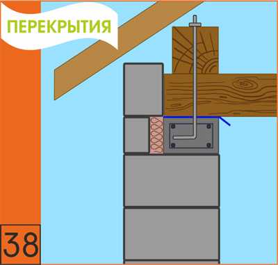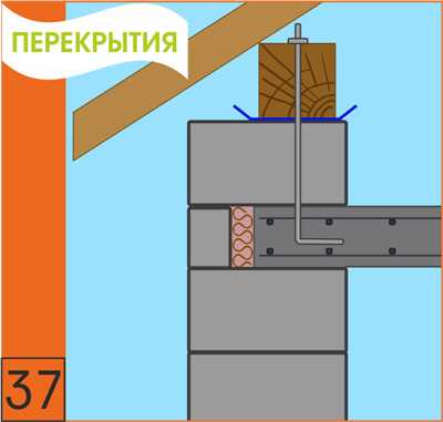 37. При устройстве монолитного железобетонного перекрытия антисейсмический (армированный) пояс не выполняется. Шпильки для крепления мауэрлата выпускаются с шагом 1000 мм, либо мауэрлат закрепляется анкерами.