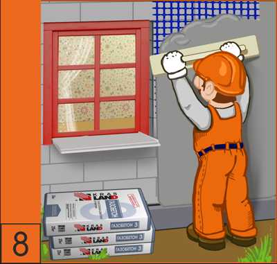 7. Наружная отделка стен. Оштукатуривание фасада следует проводить после просыхания штукатурки внутри. Толщина наружного слоя штукатурки должна быть в 2 раза меньше внутреннего штукатурного слоя. Перед оштукатуриванием поверхность стены из газобетона пропитать укрепляющей пропиткой Krasland G02.