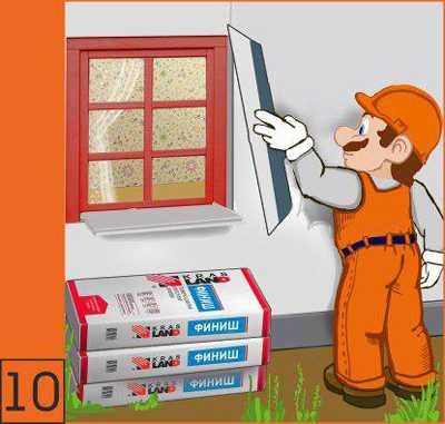 10. После высыхания пропитки повести финишное выравнивание полимерно-цементной влагостойкой фасадной шпаклевкой Krasland ФИНИШ.