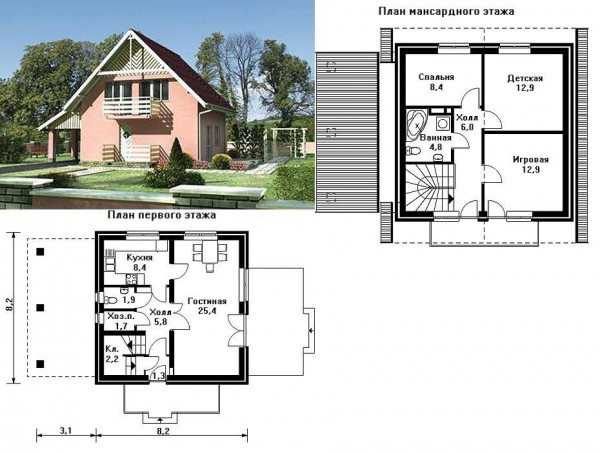 Вариант проекта с указанием размеров здания и фото готовой конструкции