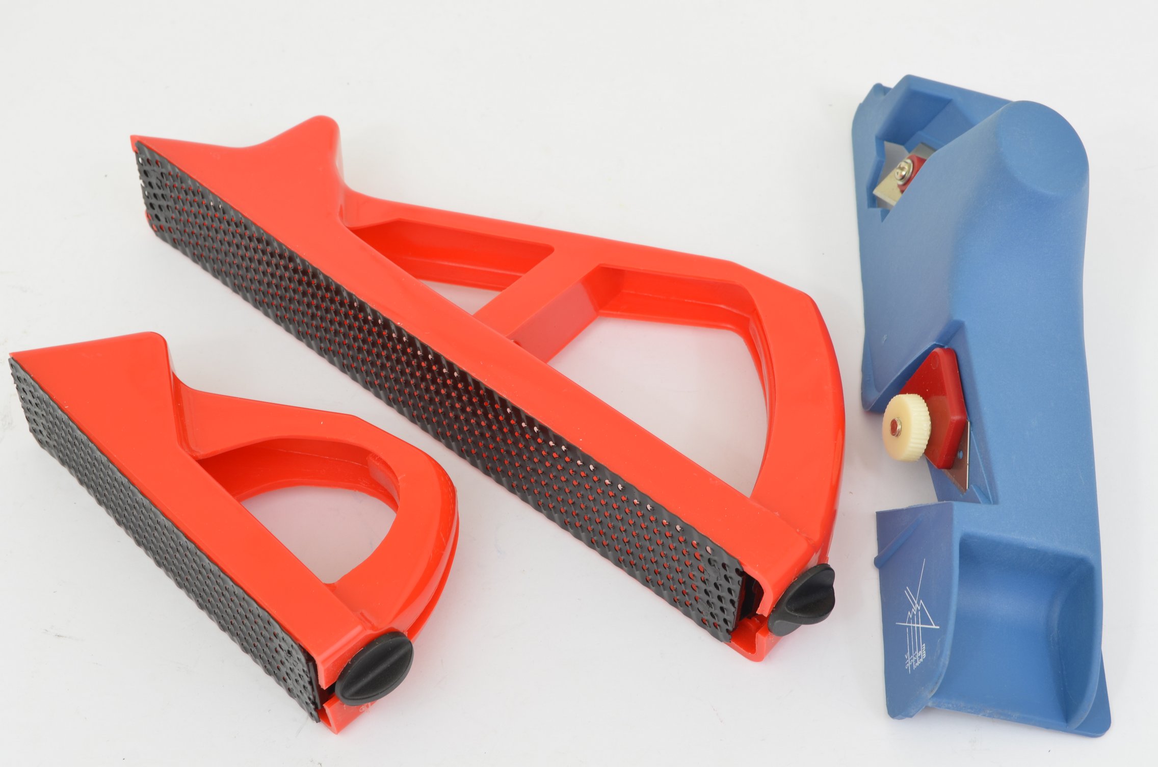 Для изготовления колодки нам потребуется доска шириной 150–380 мм и толщиной 25–35 мм. Для рукояти можно взять многослойную фанеру сечением 15–25 мм. Удачный прием – воспользоваться одной длинной или двумя готовыми штукатурными терками: их следует просто прикрутить на центральной продольной линии в удобных местах. С ножами мы уже определились – их можно изготовить из пильных полотен. Клеи: подойдут любые составы – от эпоксидки и полиуретана до традиционного «Момента». Об эпоксидке можем сказать, что этот материал очень надежен – настолько, что рубанок потом – если и захочешь разобрать – не получится. Поэтому, рекомендуем «Момент».