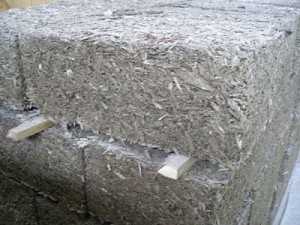 - М15. На 200 кг опилок берется 150 кг цемента, 350 кг песка, 100 кг извести или глины. Плотность – 800 кг/м3.